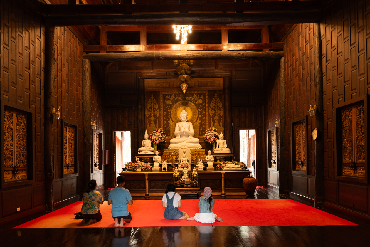 • Le Viharn principal (salle d’assemblée) est remarquablement construit entièrement en bois de teck, ce qui est assez rare et impressionnant en Thaïlande aujourd’hui.